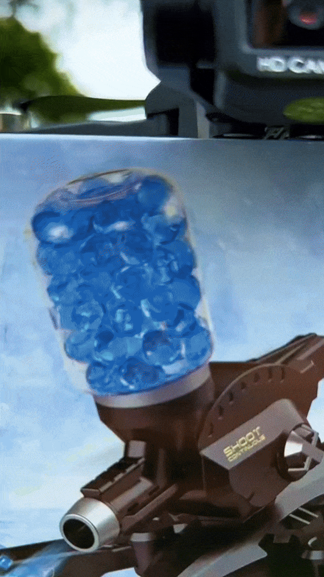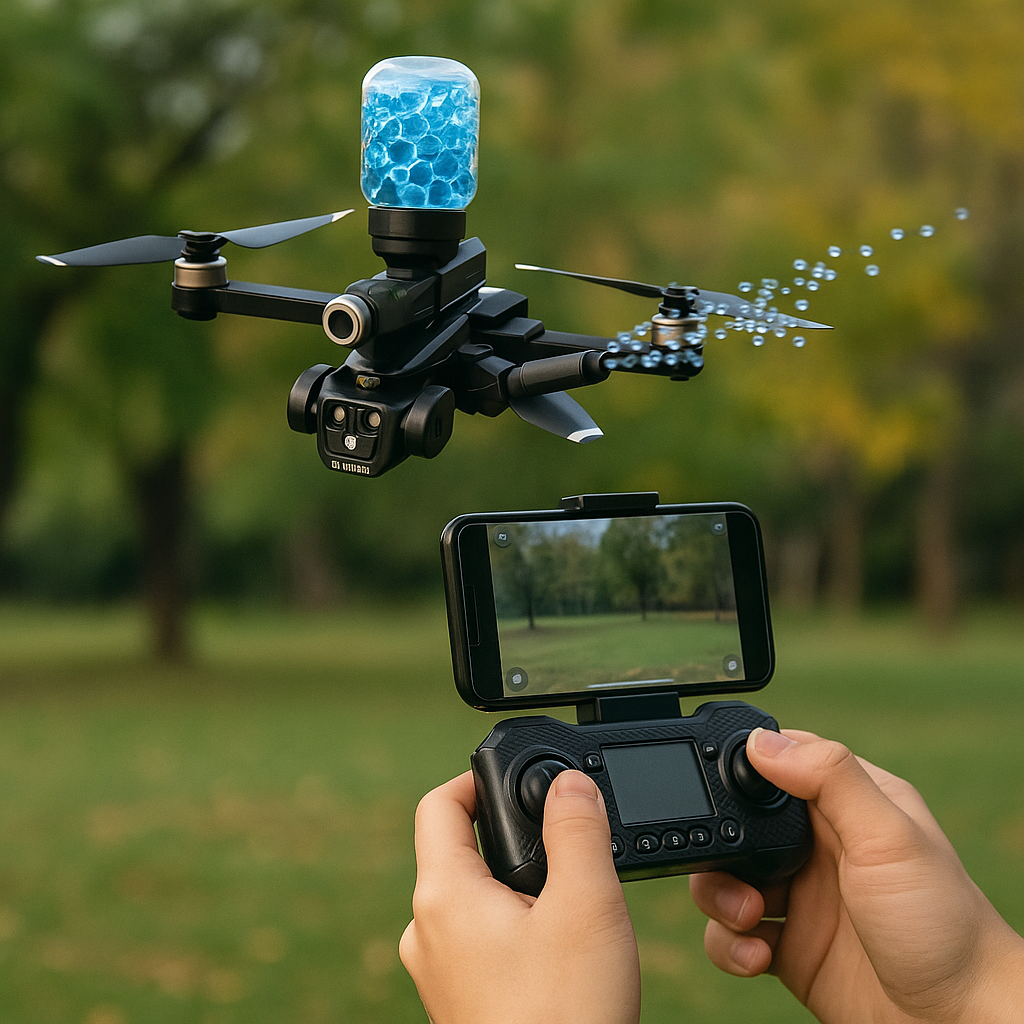 ✅ Dispará municiones de hidrogel seguras directamente desde el aire, con solo un toque desde el control o app